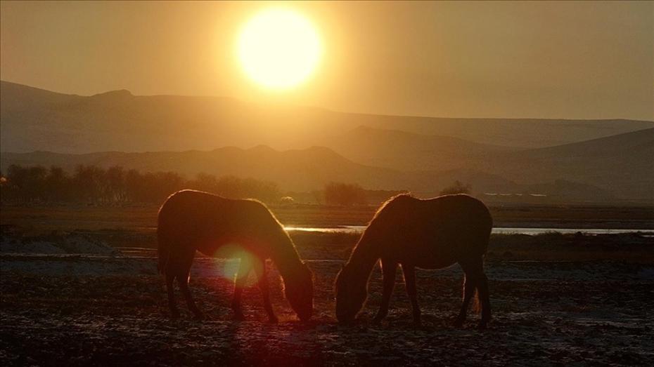 Türkiye'nin dört bir yanından fotoğraf tutkunlarının ziyaret ettiği Erciyes Dağı’nın eteğinde göçmen kuşlara ev sahipliği yapan Hürmetçi Sazlığı'ndaki yılkı atları dronla görüntülendi.