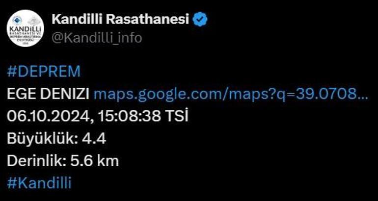Öte yandan Kandilli Rasathanesi depremin büyüklüğünü 4.4 olarak paylaşırken derinliğini ise 5.6 km olarak duyurdu.