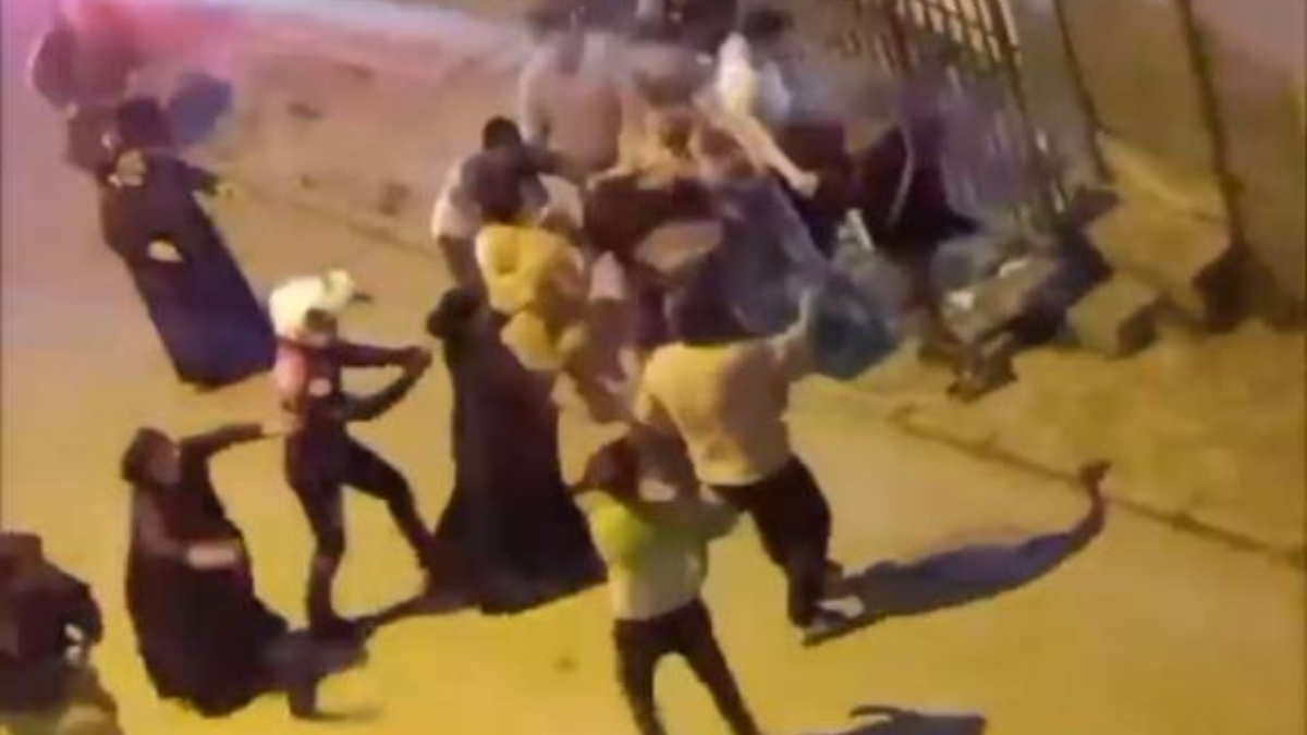 Kadın ve erkeklerin karıştığı kavgada tekme ve yumruklar havada uçuştu. Olay yerine gelen polis ekipleri havaya ateş açarak ayırdı. O anlar kameraya yansıdı.